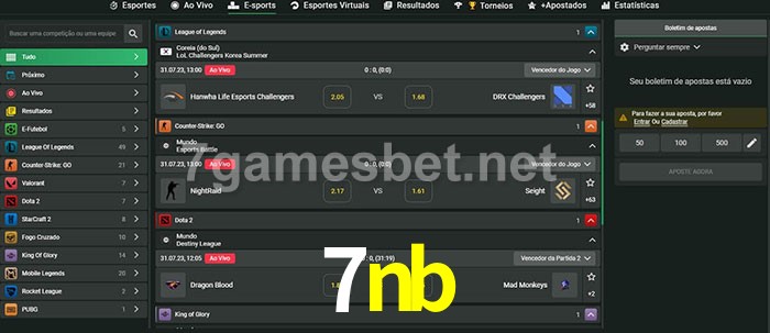 A aposta 7nb oferece aos jogadores a experiência mais conveniente de apostas em eSports!